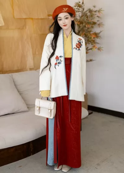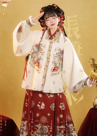 Women Ming Dynasty Winter Hanfu 3-Piece Set Skirt & Cardigan Plus Size | HANFUBAO