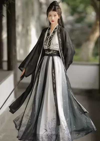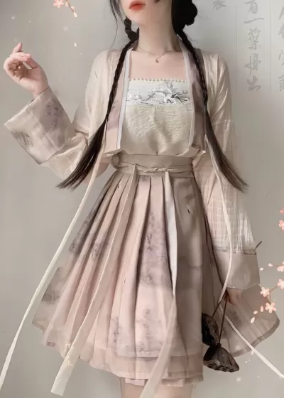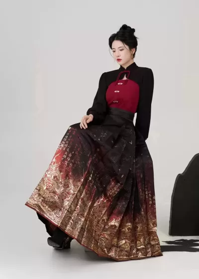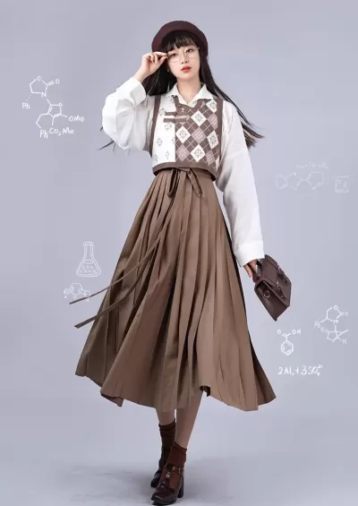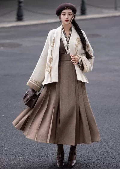 Women’s Modern 3-Piece Ma Mian Hanfu Skirt Set, Daily Wear, Plus Size | HANFUBAO