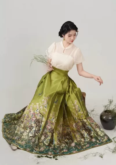 Women Modern Hanfu 3-Piece Ma Mian Skirt Set Qingyu | HANFUBAO