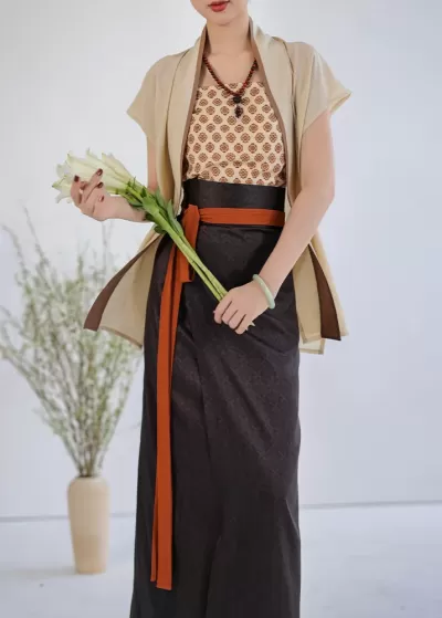 Women Modern Hanfu 3-Piece Tencel-Viscose Set Rice Bloom | HANFUBAO