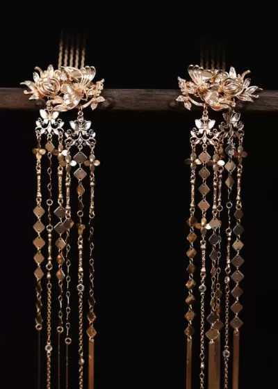 Women Firefly Glow Tassel Hairpins Gold Metal Hanfu Accessory | HANFUBAO