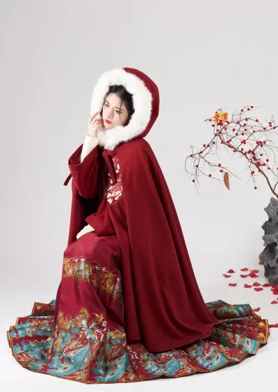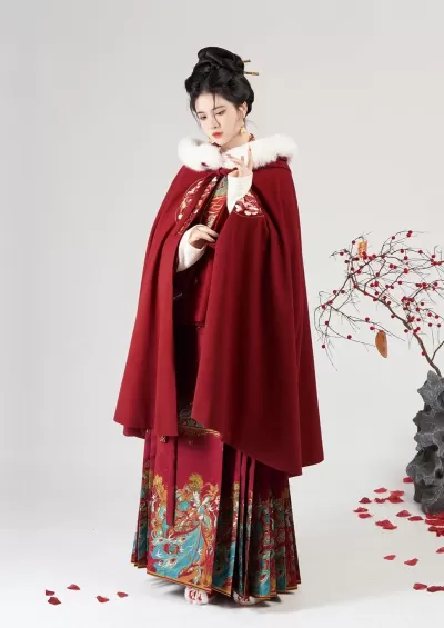 Women’s Winter Ma Mian Skirt Set Detachable Faux Fur Cuffs & Collar | HANFUBAO