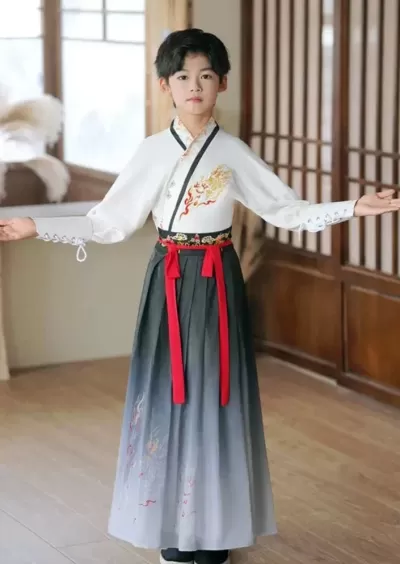 Kids 3-Piece Song Dynasty Hanfu Set Flame Embroidery for Festivals| HANFUBAO