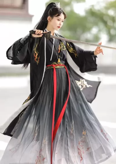 Unisex 5-Piece Song Dynasty Hanfu Set Flame Embroidery| HANFUBAO