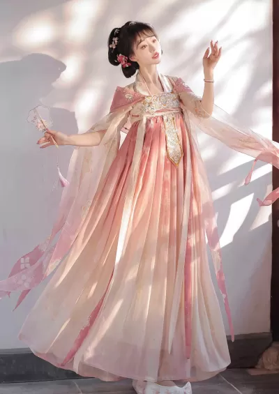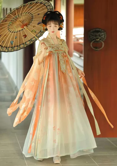Women’s 3-Piece Tang Embroidered Chiffon Hanfu Set, Skirt+Shawl | HANFUBAO