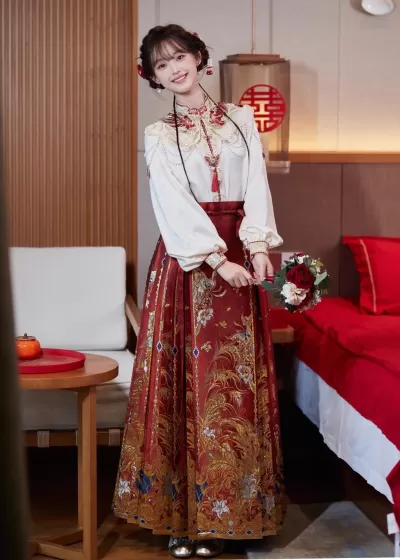 Women's 3-Piece Modern Wedding Hanfu Set Phoenix Embroidery | HANFUBAO