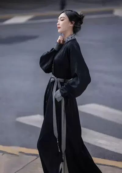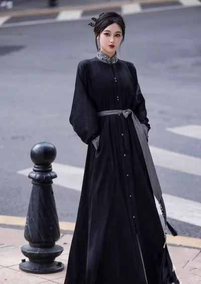 Women's Modern Black Lolita Daily Hanfu Dress, Plus Size | HANFUBAO