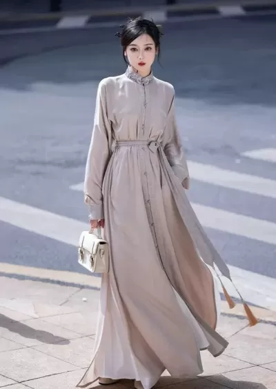 Women 3-Piece Daily Hanfu Set Viscose-Nylon Belted Dress | HANFUBAO