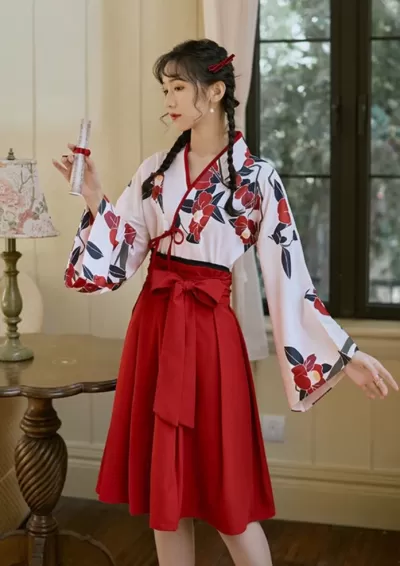 Women Modern Daily Hanfu Short Dress Camellia Red/Black Plus Size | HANFUBAO