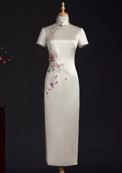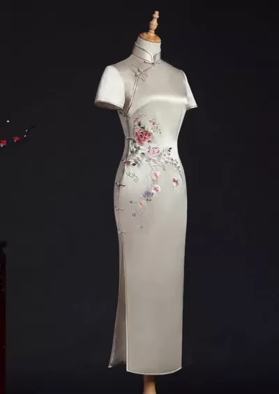 Women’s Modern Hanfu Qipao Dress for Daily Wear Acetate Satin Rose Print| HANFUBAO
