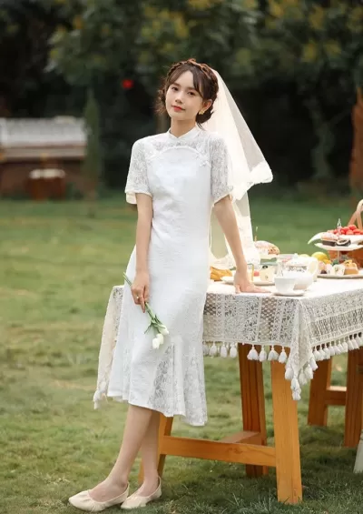 HANFUBAO | Women Lace Modern Hanfu Qipao Wedding Dress White S-XL