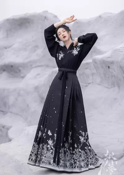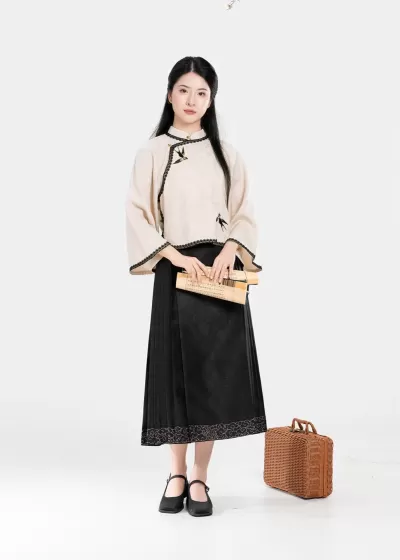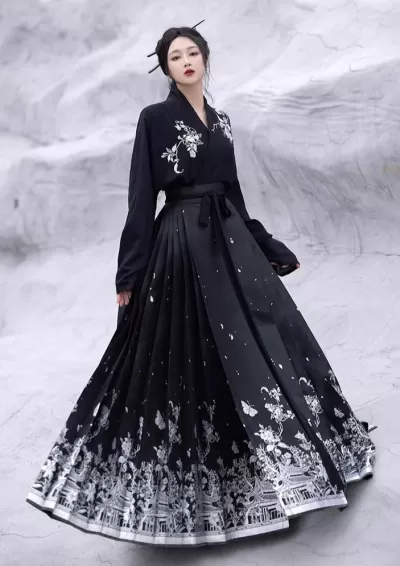 Women's Daily Hanfu 2-Piece Set Black Modern Skirt Outfit| HANFUBAO
