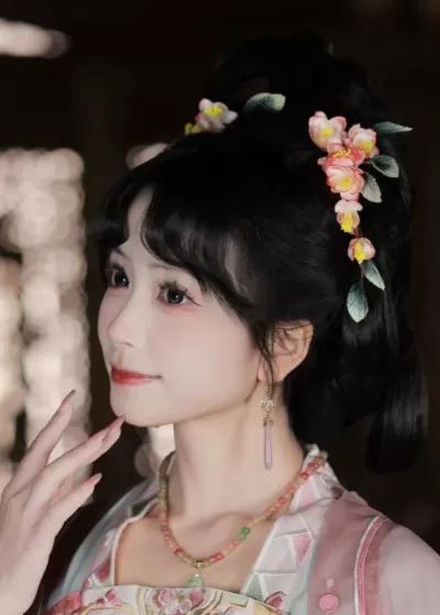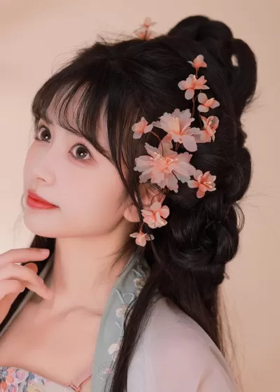 Women Hanfu Apricot Blossom 2-Piece Flower Hair Pieces Yarn Gauze| HANFUBAO