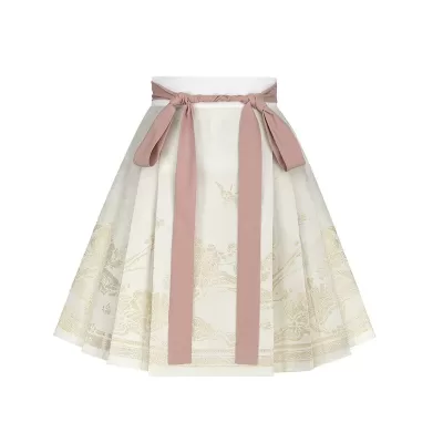 Women’s 2-Piece Republican Era Hanfu Set, Blush Pink Top & Skirt| HANFUBAO