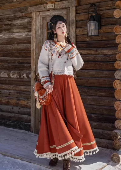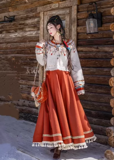 Women 2-Piece New Year Daily Hanfu Set, Embroidered Floral Skirt| HANFUBAO