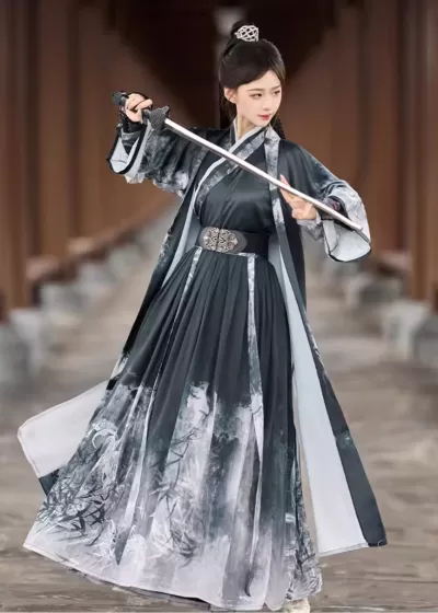 Unisex 3-Piece Song Dynasty Hanfu Set Bamboo Print Daily Wear Plus Size| HANFUBAO