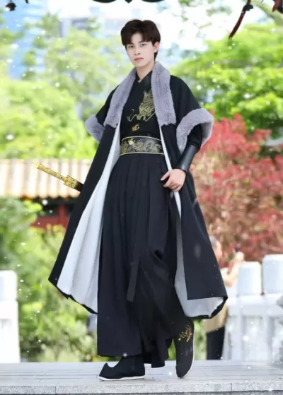 Men's 3-Piece Black Daily Hanfu Set Plus Size | HANFUBAO