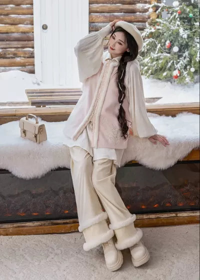 Unisex Modern 3-Piece Daily Hanfu Set Wool-Blend Jacket Plus Size | HANFUBAO