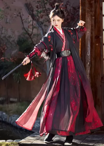 * 5-piece Hanfu Set: Outer Layer + Inner Layer + Bracers + Belt + Shawl