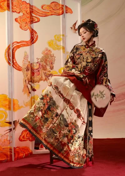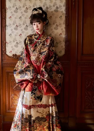 Women 2-Piece New Year Daily Hanfu Set, Embroidered Floral Skirt| HANFUBAO
