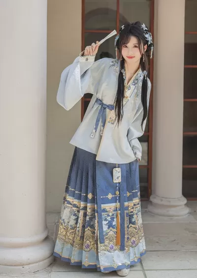 Women 5-Piece Blue Butterfly Floral Embroidered Hanfu Dress Set | HANFUBAO