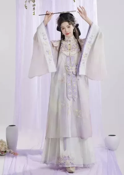 * 5-Pieces Hanfu: Cape + Tank Top + Long Shirt + Skirt + Cloud Collar