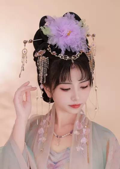 Women Hanfu Apricot Blossom 2-Piece Flower Hair Pieces Yarn Gauze| HANFUBAO
