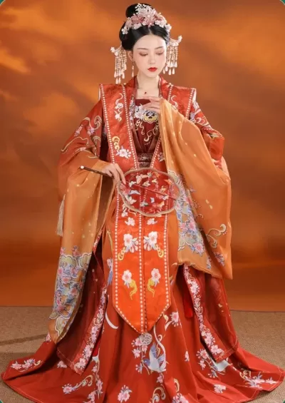 This dress is named after Wang Zhaojun (王昭君) was known as one of the Four Beauties of ancient China. She was sent by Emperor Yuan to marry Chanyu Huhanye of the Xiongnu Empire in order to establish friendly relations with the Han dynasty through marriage.