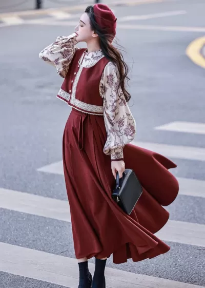 * A Set of Hanfu: Fleece Blouse + Skirt + Coat