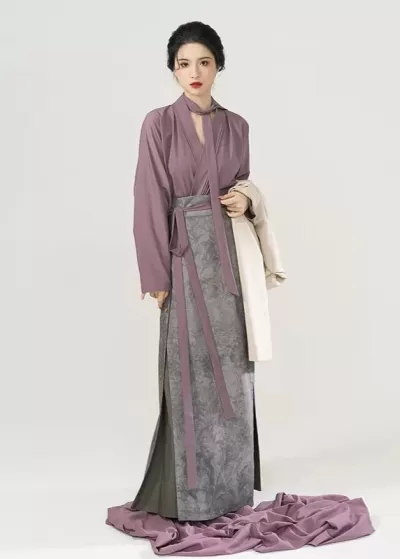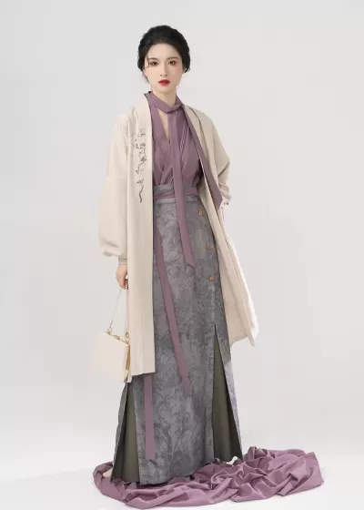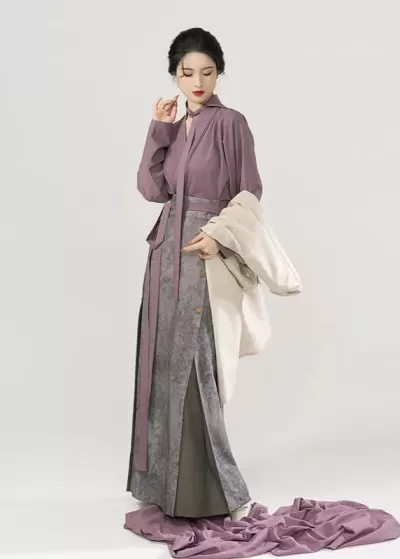 Women Modern Hanfu 2-Piece Qipao Set Violet Mist | HANFUBAO