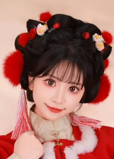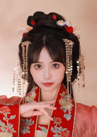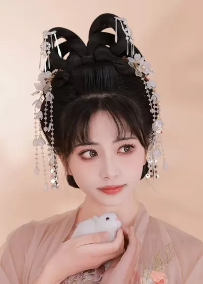 Women’s 2-Piece Apricot Blossom Yarn Flower Hanfu Hair Clips | HANFUBAO