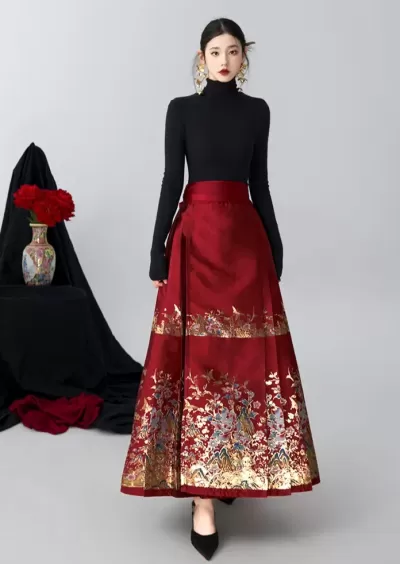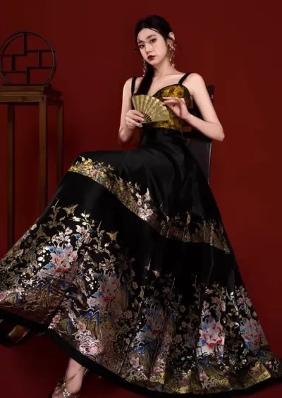 Women’s Acetate Jacquard Black Rose Qipao Dress, High Slit| HANFUBAO
