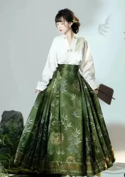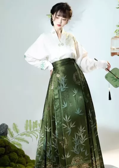 Women’s Daily Hanfu Ma Mian Skirt Set Bamboo Embroidery Plus Size | HANFUBAO