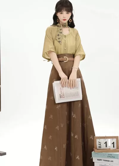 * A Set of Hanfu: Skirt + Blouse + Vest