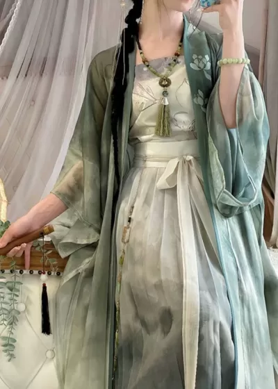 Women's Plus Size 3-Piece Daily Hanfu Set Chiffon Dress Top Shawl | HANFUBAO