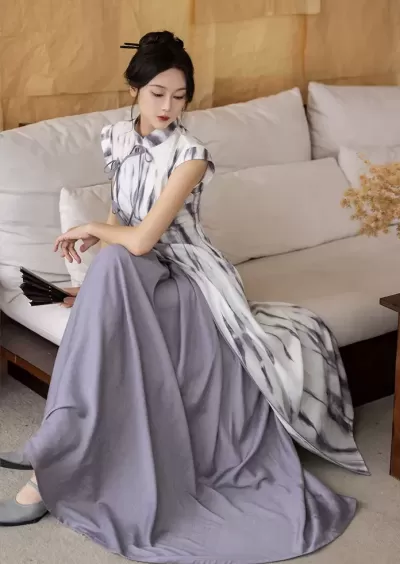 * A Set of Qipao: Top + Dress + Hairband