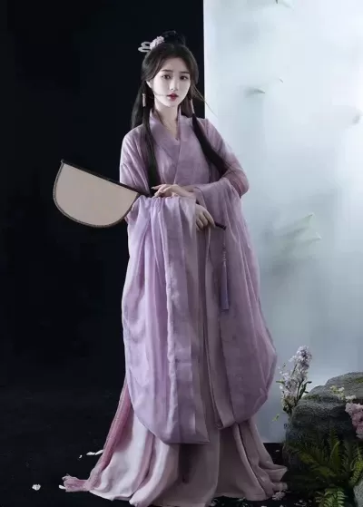 Women Tang Style 4-Piece Lilac Floral Embroidered Chiffon Hanfu Set| HANFUBAO